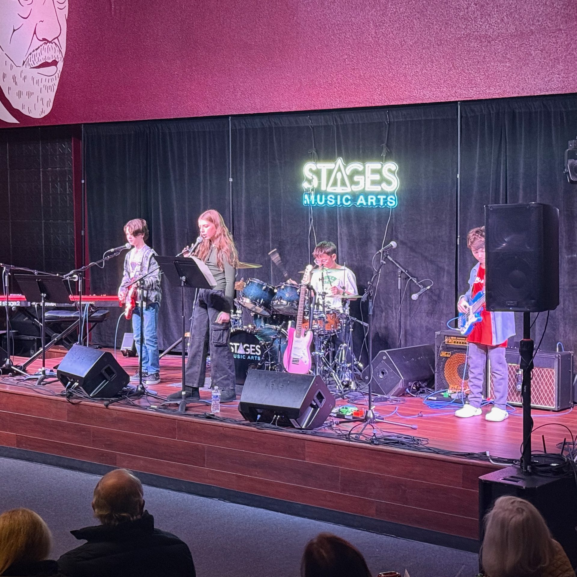 Our May 2026 Student Spotlight is shining on an incredibly talented rock star and front woman of the long-standing Stages kids band Roses & Rogues – Amelia Beasman. Amelia was nominated by Taylor O’Connell, who says she “works incredibly hard, shows up every week with a consistently positive attitude, and isn’t afraid to take on new challenges. She’s dedicated, motivated, and a joy to work with!”