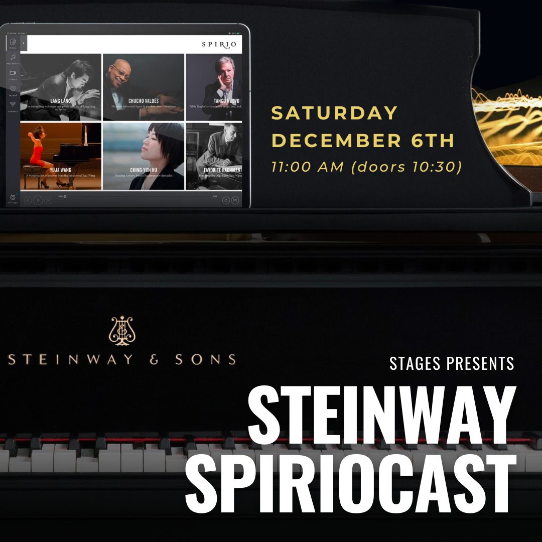 The Steinway & Sons Spirio is the world’s finest high resolution player piano. A masterpiece of artistry and engineering, Spirio enables you to enjoy performances played by great pianists — captured with such nuance, power, and passion that they are utterly indistinguishable from a live performance. Experience this cutting-edge piano technology with a live Spiriocast. Played by a professional pianist at the Steinway Factory in New York City – the music will simulcast live in the Stages Music Arts performance hall in real time. You’ll see the artist live on screen from New York while the Spirio replicates the performance note for note in real time on our very own stage with stunningly accurate dynamics.